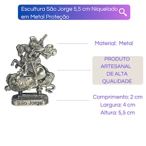 A Escultura São Jorge 5,5 cm Niquelado da Bialluz, é uma escultura com muito valor espiritual, representa toda a tradição católica e possui muita fé envolvida. Tem detalhes minuciosos e uma pintura maravilhosa que ressalta toda a escultura. Por ser confeccionada em Metal tem alta qualidade e resistência. Carregada de fé e paz, trará ótimas energias para sua vida e dará muita luz no seu caminho!