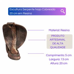 _x000D_ A Escultura Serpente Naja 20 cm em Resina em Resina da Bialluz representa a renovação e eternidade. Nossa Escultura Serpente Naja trará muita sabedoria e luz em sua vida. Emanará muitas energias positivas em seu ambiente e afastará todas incertezas. Confeccionada em Resina nossa escultura tem alta durabilidade e detalhes muito bem feitos que compõem a belíssima qualidade dessa peça. _x000D_