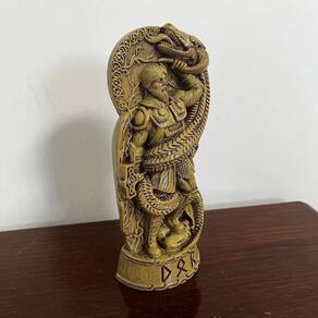 Material: Resina Tamanho do produto: 9,5* 4,5* 20 cm Peso do produto: 300 g Design de batalha de Thor e Jörmungandr — Uma representação impressionante da lendária batalha entre o deus nórdico Thor e a serpente Midgard Jörmungandr, capturando a intensidade de seu choque mitológico. Artesanato detalhado em resina — Feita de resina de alta qualidade, esta escultura apresenta elementos detalhados pintados à mão, garantindo um retrato vívido dos personagens mitológicos nórdicos. Tamanho perfeito para exibição — Com 8 polegadas de altura, essa cena de batalha é ideal para ser exibida em mesas, prateleiras ou como parte de uma coleção com tema nórdico em sua casa. Decoração de casa inspirada na mitologia — Uma peça decorativa exclusiva para fãs da mitologia nórdica, da história viking ou de lendas antigas, adicionando um toque de narrativa épica a qualquer ambiente. Ornamento versátil para todos os ambientes — Seja para a sala de estar, escritório ou escritório, esta escultura serve como um ponto focal ousado e fascinante para qualquer espaço, dando vida à mitologia nórdica.