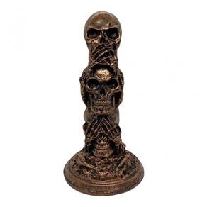 Escultura Toten 3 Crânios 12,5cm em Resina - Selecione a Cor Cor: Cobreado Escultura Toten 3 Crânios Sabedoria 12,5 cm em Resina