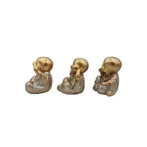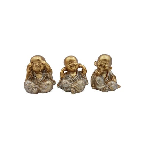 Escultura Trio Buda Dourado Com Glitter Mandy Hands Trio buda Dourado não falar mal, não escutar o mal e não ver o mal Simbolizando os conhecimentos e ensinamentos de Buda, esse objeto decorativo feito de Resina renova as energias da nossa casa, transmitindo paz, positividade e felicidade. Além disso, essa representação do Buda desperta as sensações, nos proporcionando alegria, tranquilidade e bem-estar. Simbolizando os conhecimentos e ensinamentos de Buda, esse objeto decorativo feito de feltro renova as energias da nossa casa, transmitindo paz, positividade e felicidade. Além disso, essa representação do Buda desperta as sensações, nos proporcionando alegria, tranquilidade e bem-estar. Características: Marca: Many Hands Material: Resina Cor: Dourado Tamanho: 9 x 7 x 7 cm (C/L/A) Peso: 118g Ficha técnica - Fonte do produto: Many Hands - Ambientes: Interior - Com base: Não - Nome: Buda