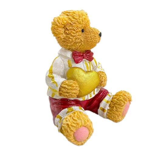 Escultura urso de resina sentado coração 12,5cm