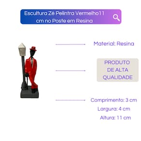A Escultura Zé Pelintra Vermelho em Resina da Bialluz é uma estatueta repleta de detalhes bem feitos e um ótimo item decorativo. Confeccionado em resina garante alta resistência e durabilidade. Possui uma pintura realizada artesanalmente com um brilho incomparável e cores vibrantes. Nossa escultura é carregada de fé e paz, trará ótimas energias para sua vida e dará muita luz no seu caminho!