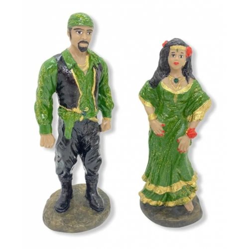 Esculturas Casal Ciganos 15 cm em Resina - Selecione a Cor _x000D_