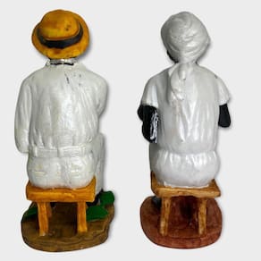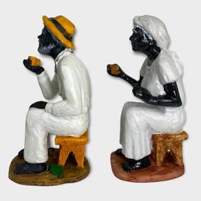 Esculturas casal de Pretos Velhos sentados 15 cm Esta escultura em resina trará boas energias e harmonia para sua casa, irá trazer bons fluídos. É ideal para colocar em seu altar ou completar a decoração de seu ambiente. Esculturas são itens especiais e decorativos, é um recurso que dá um toque a mais em qualquer ambiente, tem um valor espiritual e sentimental. Você pode enfeitar com um estilo próprio com muito bom gosto o seu altar ou ambiente.Aplicação: Decora sala, estantes, home office, altares, aparadores, mesa de canto ou escritório. É também uma ótima opção para presente, o excelente acabamento da pintura permite mais beleza e estilo para sua casa ou escritório. Marca: Lua Mística - 100% Original - Loja Oficial