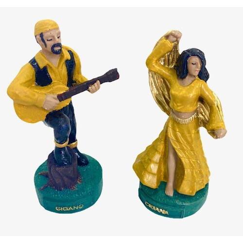 Esculturas Ciganos Casal Amarelo em Resina 11 cm Apesar de não serem médicos, os ciganos na Umbanda são chamados com muita frequência para a realização de curas espirituais. Já as entidades femininas são as favoritas para quem precisa de ajuda ou conselhos na vida Amorosa, principalmente em casos de amores proibidos, impossíveis, ou até mesmo No caso de infidelidade. Além de servir como decoração, essa linda escultura em resina de alta qualidade, pintura artesanal e acabamento rico em detalhes pode ser um ótimo presente para homenagear pessoas especiais.