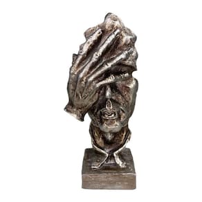 Esculturas Trio Sábios Cego Surdo e Mudo 16cm em Resina Cor: Prateado Esculturas Trios Sábios Cego Surdo e Mudo 16cm Patina Resina