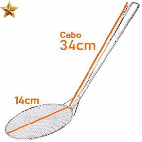 Escumadeira com material em arame estanhado resistente a altas temperaturas e uma durabilidade de cair o queixo.