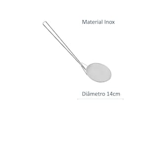 Escumadeira para fritura redonda 14cm, durável, super resistente, atende bem restaurantes, cozinhas industriais e residenciais.Material: InoxCabo: 34cmDiâmetro: 14cmPeso: 0,110kg