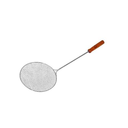 A escumadeira pequena Nº 1 é super resistente, fabricada em arame de aço, com um exclusiva cabo de madeira, para facilitar o manuseio dos alimentos na hora de fritar e escorrer.
