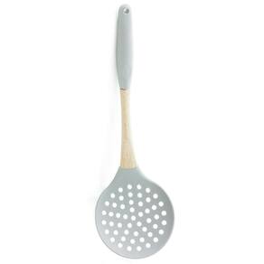 - Fabricada em Silicone - Cabo em Madeira e Silicone - Cabo possui furo para pendurar - Escumadeira possui 10,5cm diâmetro - Escumadeira é Flexível, maleável - Suporta temperaturas entre -40C a +240C