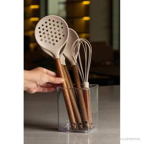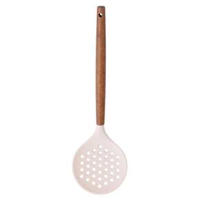 A Escumadeira de Silicone Creme Paramount Creme Cabo de Madeira 33 cm é uma peça elegante e funcional, ideal para retirar alimentos de líquidos com facilidade e precisão. Com 33x10x6 cm, seu design oferece conforto e controle durante o uso.