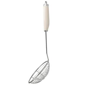 A escumadeira da KitchenAid possui a parte principal feita de aço inoxidável extra grande com aberturas, permitindo que o líquido escorra rapidamente.