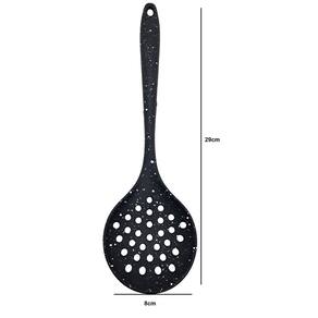 Escumadeira De Silicone Texturizado De Cozinha 29cmo utensílio em silicone é um diferencial em nossa cozinha, pois ele não danifica as panelas com superfície antiaderente, são fáceis de limpar, além de ser muito belo e podendo ser utilizado como decoração.Características: – Comprimento: 29cm x 8cm– Material: Silicone e Nylon– Não riscam a panela– Possuem furo para pendurarContém:1 escumadeira de silicone Marca: Wari Marca: Wari