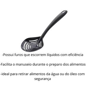 - Aplicação: Retirar alimentos da água ou do óleo quente, como massas, frituras e legumes cozidos;