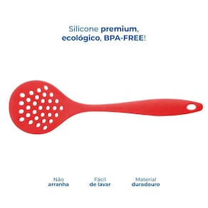Escumadeira de silicone premium thika 28,7cm -------------------- Praticidade e proteção para sua cozinha - a escumadeira de silicone premium da marca thika é perfeita para o dia a dia. - ideal para uso em panelas antiaderentes, pois seu material não risca ou danifica os revestimentos. - o silicone é resistente ao calor e suave ao toque, proporcionando maior segurança e durabilidade no preparo dos alimentos. -------------------- Características do produto - comprimento: 28,7 cm - material: silicone premium - não risca panelas ou utensílios com revestimento antiaderente - resistente a altas temperaturas - design ergonômico e moderno - fácil de limpar e com furo no cabo para pendurar ------------------ Variações disponíveis - cor: vermelha, preta ou cinza escolha no momento da compra -------------------- Aplicação e uso - ideal para frituras, massas, legumes e preparo de diversos alimentos - utensílio essencial para quem busca praticidade, higiene e durabilidade na cozinha -------------------- Sobre nós: