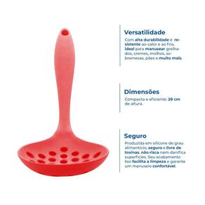 Escumadeira de silicone premium thika 28,7cm -------------------- Praticidade e proteção para sua cozinha - a escumadeira de silicone premium da marca thika é perfeita para o dia a dia. - ideal para uso em panelas antiaderentes, pois seu material não risca ou danifica os revestimentos. - o silicone é resistente ao calor e suave ao toque, proporcionando maior segurança e durabilidade no preparo dos alimentos. -------------------- Características do produto - comprimento: 28,7 cm - material: silicone premium - não risca panelas ou utensílios com revestimento antiaderente - resistente a altas temperaturas - design ergonômico e moderno - fácil de limpar e com furo no cabo para pendurar ------------------ Variações disponíveis - cor: vermelha, preta ou cinza escolha no momento da compra -------------------- Aplicação e uso - ideal para frituras, massas, legumes e preparo de diversos alimentos - utensílio essencial para quem busca praticidade, higiene e durabilidade na cozinha -------------------- Sobre nós:
