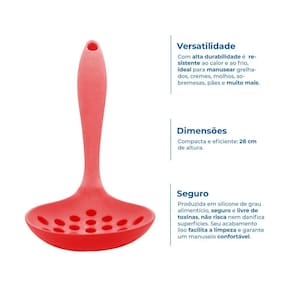 Escumadeira de silicone premium thika 28,7cm -------------------- Praticidade e proteção para sua cozinha - a escumadeira de silicone premium da marca thika é perfeita para o dia a dia. - ideal para uso em panelas antiaderentes, pois seu material não risca ou danifica os revestimentos. - o silicone é resistente ao calor e suave ao toque, proporcionando maior segurança e durabilidade no preparo dos alimentos. -------------------- Características do produto - comprimento: 28,7 cm - material: silicone premium - não risca panelas ou utensílios com revestimento antiaderente - resistente a altas temperaturas - design ergonômico e moderno - fácil de limpar e com furo no cabo para pendurar ------------------ Variações disponíveis - cor: vermelha, preta ou cinza escolha no momento da compra -------------------- Aplicação e uso - ideal para frituras, massas, legumes e preparo de diversos alimentos - utensílio essencial para quem busca praticidade, higiene e durabilidade na cozinha -------------------- Sobre nós: