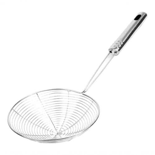 Espumadeira ou Escumadeira Inox tenha em sua cozinha residencial ou comercial, excelente produto com qualidade e eficiência pode ser diretamente em com o óleo ao fogo, em frituras por exemplo ou a mesa para se servir.