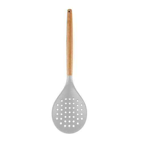 A escumadeira de silicone da Pramount e indicada para tirar alimentos da agua de cozimento, pois seus furos possibilitam que a agua escorra. Você pode usar para tirar carnes de um cozido ou para retirar frituras que não sejam feitas imersas em oleo. Serve também para tirar a espuma que se forma ao fritar ou cozinhar algo. Seu cabo em madeira deixa qualquer cozinha estilosa.