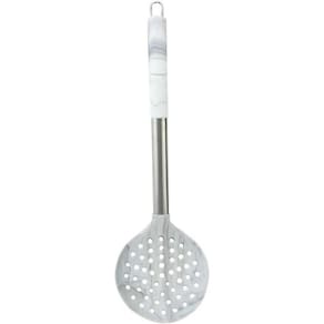 Com medidas de 10,3 cm de largura por 34,5 cm de comprimento, essa escumadeira é perfeita para utilizar em diferentes tipos de panelas. Além disso, ela possui uma estampa marmorizada, que confere um toque de estilo ao seu utensílio de cozinha.