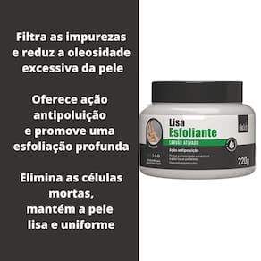 Quer deixar sua pele macia, suave e livre de impurezas Então experimente o esfoliante carvão ativado bio soft com sua ação poderosa e inovadora que ajuda a reduzir a oleosidade excessiva da pele. Possui ação anti poluição, promovendo uma esfoliação profunda, eliminando as células mortas e todas as impurezas causadas pela exposição à poluição diária. Além disso, oferece ação clareadora.