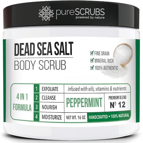 - Obtenha uma pele ultra lisa rapidamente – isso funciona! Nossa exclusiva fórmula 4 em 2 faz tudo o que um esfoliante corporal deve fazer e muito mais – Esfoliar, limpar, nutrir e hidratar. O sal do mar morto de grão fino infundido com óleos essenciais, nutrientes e amaciantes de pele ajuda a suavizar texturas ásperas, irregulares e irregulares para revelar instantaneamente sua verdadeira pele macia, saudável e radiante. Você vai adorar o aroma de hortelã-pimenta!