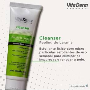 Vita Derm Cleanser Peeling de Laranja Esfoliante facial para peles espessas e normais. vita Derm Cleanser Peeling de Laranja limpa profundamente, remove as células mortas e matifica, além de combater o excesso de oleosidade.