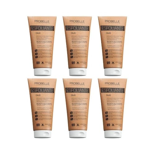 Esfoliante probelle 150g caju - kit com 6 unidades Descrição Desperte a luminosidade natural da sua pele com o esfoliante corporal probelle caju. Enriquecido com extrato de caju, este esfoliante promove uma limpeza profunda, removendo células mortas e impurezas, ao mesmo tempo em que hidrata suavemente. Sua fórmula exclusiva combina partículas esfoliantes eficazes com propriedades revitalizantes do caju, deixando a pele mais macia, lisa e com um toque sedoso. Ideal para todos os tipos de pele, pode ser regularmente para manter a pele sempre renovada e saudável. Modo de uso Com a pele úmida, aplique uma pequena quantidade do esfoliante nas áreas desejadas como braços, pernas, cotovelos ou costas . Massageie com movimentos circulares suaves, evitando áreas sensíveis ou lesionadas. Deixe agir por alguns instantes, se desejar maior hidratação. Enxágue abundantemente com água. Use de 1 a 2 vezes por semana, ou conforme a necessidade da sua pele. Marca: Não Informado