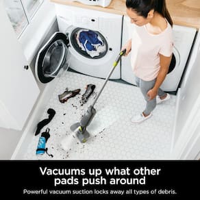 - Sucção potente e esfregão em spray — uma almofada descartável completa de limpeza sem entupir sua máquina.