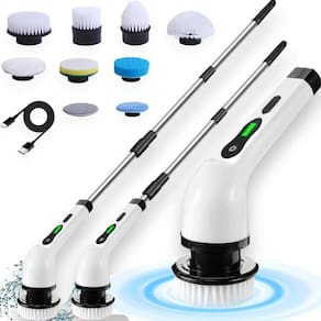 Esfregão elétrico mop versátil 7 em 1 com limpeza 360° giratória, bateria recarregável de 2500mAh, tempo de trabalho de 90 minutos, inclui cabo extensor e diversos acessórios de limpeza.Filtro HEPA (filtra até 99,9% das impurezas do ar)