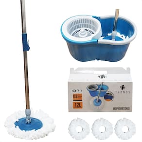Esfregão Mop Giratório 360° Tronos - Balde 12 Litros - Centrífuga em PVC - Dispenser para Sabão - 3 Refis - 63412