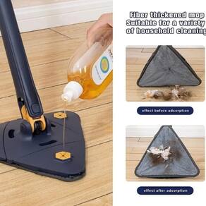 O mop triangular giratório foi projetado para tornar a limpeza mais prática e eficiente. Com uma cabeça giratória de 360 graus e design triangular, ele alcança facilmente os cantos mais difíceis, como os das paredes, tetos e janelas.