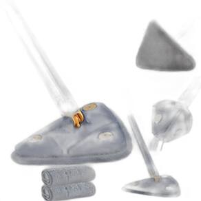 Esfregão com cabeça triangular facilita a limpeza e alcança até os cantinhos mais altos e difíceis de limpar;