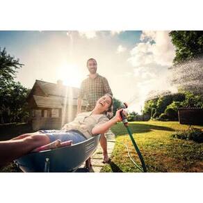O conjunto de irrigação é utilizado para irrigar o jardim ou a horta doméstica. O conjunto é utilizado para a montagem de um sistema completo de irrigação. Pode ser conectado em mangueiras com engate rápido de 1/2", 3/4" ou 5/8". Água: pode faltar. Não desperdice. Para descarte dos produtos e embalagens siga as orientações de reciclagem vigentes.