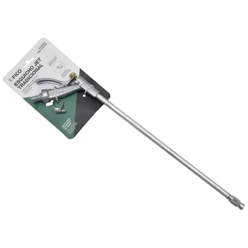 Ideal para lavar pisos, janelas altas, veículos, lugares de difícil acesso, É prático de usar, leve e de alta durabilidade, Exclusivo bico Click para regulagem de jatos em apenas 1 clique, Trava conforto para manter os jato sempre uniforme, Total controle de vazão através do gatilho gerando mais economia de água, Materiais: Alumínio, Zamac e Aço, Alcance do jato: Até 8,5 m com inclinação de + - 15º, Medidas: 45 cm de comprimento, bico: 1/2 Polegada, Cor: Prata, Marca: Fico, Itens Inclusos: 1 Esguicho Jet tradicional com gatilho + 1 Abraçadeira de aço 1/2 Polegada, Produto isento de registro Anvisa/Inmetro. Ean: 7896544261211