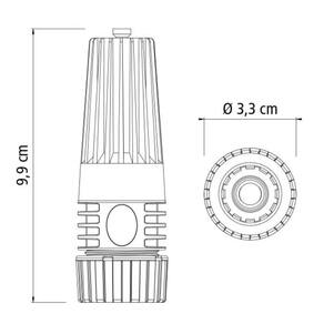 Informações técnicas - Produto fabricado com matéria-prima de alta qualidade proporcionando uma irrigação precisa e confiável. - Possui prático sistema de regulagem do fluxo d''água através do regulador frontal. - O jato pode ser forte com pressão para molhar o gramado ou plantas grandes, e um jato suave para molhar culturas mais sensíveis como flores e hortas. - O esguicho é conectado em mangueiras de 1/2" através de sistema de fixação rosqueado.