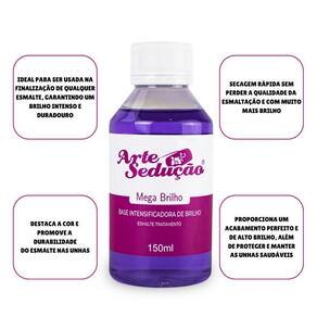 Contém: 01 - Base Intensificadora de Brilho Mega Brilho, 150ml, Arte Sedução A Base Intensificadora de Brilho Mega Brilho foi especialmente formulada para quem busca por um acabamento impecável e de alto brilho. Ideal para ser utilizada na finalização de qualquer esmalte, garantindo um brilho intenso e duradouro que destaca a cor e prolonga a durabilidade do esmalte nas unhas. Sua fórmula garante que ela seque rapidamente, oferecendo uma esmaltação mais rápida e prática, com mais brilho e sem perder a qualidade, além de proteger as unhas e mantê-las saudáveis. Na embalagem de 150ml, ela rende muito mais, servindo como refil e sendo ideal para uso em salões de manicure ou por quem costuma fazer as próprias unhas em casa com frequência. Características Principais: - 150ml; - Acabamento impecável e de alto brilho; - Ideal para ser Utilizado na finalização de qualquer esmalte; - Garante brilho intenso e duradouro; - Destaca a cor e prolonga a durabilidade do esmalte nas unhas; - Secagem rápida; - Protege as unhas e as mantém saudáveis; - Indicada para ou doméstico; - Excelente custo-benefício. Boas Compras ; Marca: Não Informado Ean: 7899531424101