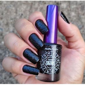 -cor Cremosa e Duradoura Preto Com Glitter O Esmalte Escorpião Coleção Signos apresenta uma cor cremosa, perfeita para combinar com o estilo do signo de Escorpião. Sua fórmula foi desenvolvida para garantir uma cobertura uniforme e duradoura, mantendo suas unhas bonitas e coloridas por mais tempo.