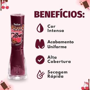 O Esmalte Cremoso Dailus Choco Cherry Cereja Silvestre é perfeito para todas as ocasiões, desde o uso diário, adicionando um toque de elegância discreta ao seu visual de trabalho, até eventos especiais que exigem um destaque maior, como festas e jantares. Sua cor intensa e acabamento cremoso são ideais para quem busca sofisticação e durabilidade em qualquer cenário, seja para um encontro casual ou uma celebração importante.