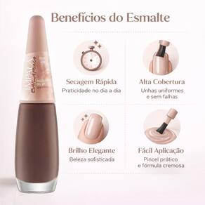 Modo de Uso/AplicaçãoAgite bem antes de usar. Aplique uma camada sobre as unhas limpas e secas, garantindo que toda a superfície esteja coberta. Aguarde a secagem e aplique uma segunda camada, se desejar, para intensificar a cor e o brilho. Para um resultado ainda melhor, utilize uma base antes da aplicação do esmalte e um top coat após a aplicação da cor, para maior durabilidade e brilho.