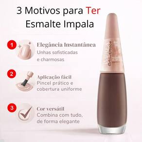 Transforme suas unhas em uma obra de arte com este esmalte que oferece cobertura uniforme e brilho intenso. Seja para um evento especial ou para o dia a dia, ele garante um visual impecável e duradouro. Experimente a sofisticação e o cuidado que só a Impala pode oferecer.