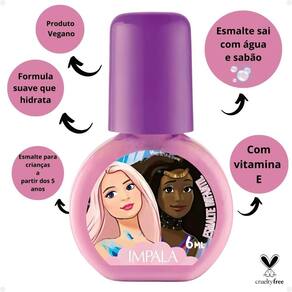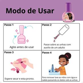 Sua fórmula é totalmente segura, dermatologicamente testada e livre de componentes agressivos, garantindo o cuidado com as unhas delicadas das crianças. O esmalte é de fácil remoção, saindo com água e sabão, o que evita o uso de removedores de esmalte agressivos e proporciona praticidade no dia a dia.