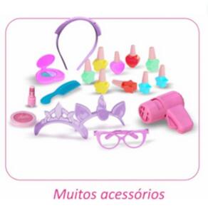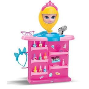 O Brinquedo é um lançamento lindo! Quase um mini salão com esmalteria, rosto pra maquiagem, espelho que gira, esmaltes, secador, tiaras, oculos maquiagens. A criança terá muitas coisas pra fazer, poderá brincar de cuidar das unhas, do cabelo, pintar o rosto da boneca, colocar oculos tiara.