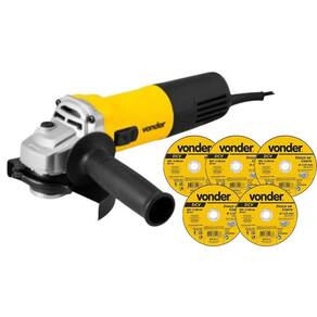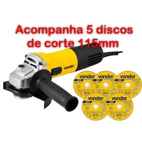 Conteúdo da embalagem: 1 esmerilhadeira angular 5 eav 905v vonder 900w 220v com velocidade variável + 5 discos de corte 115,0 mm x 1,0 mm x 22,23 mm, dcv, vonder 1 esmerilhadeira angular. Acompanha: 1 capa de proteção com trava de ajuste rápido, 1 punho auxiliar e 1 chave 2 pinos .Possui velocidade variável em 6 níveis e punho auxiliar com duas posições de fixação, que atuam como apoio durante o manuseio da ferramenta, adaptando-se a diferentes situações e locais de uso, muitas vezes de difícil acesso. Conta ainda com botão de trava do eixo, com trava de segurança e empunhadura ergonômica, que conferem maior conforto no manuseio, além de dupla isolação, garantindo maior segurança ao operador. Indicada para cortar, lixar, polir e esmerilhar superfícies metálicas. O equipamento deve ser utilizado somente com acessórios compatíveis. legal: 90 dias + contratual: 9 meses para locadoras, única e exclusiva de 90 dias Detalhes técnicos Modelo : eav 905v Potência : 900 w Capacidade da esmerilhadeira disco : 5 - 125 mm Rosca do eixo : m14 Tipo de velocidade : variável Rotação rpm : 2.800/min a 11.000/min. N1: 2.800/min; n2: 4.000/min; n3: 5.400/min; n4: 7.000/min; n5: 8.800/min; n6: 11.000/min Ajuste do cabo da esmerilhadeira : fixo Número de posições de ajuste do punho : 2 posições Segue norma : abnt nbr iec 60745-1 e abnt nbr iec 60745-2-3 Tensão v : 220 v Frequência : 50 hz/60 hz Aceleração transmitida nas mãos - braços do operador - ah : 4,32 m/s Incerteza da aceleração transmitida nas mãos - braços do operador - k : 1,5 m/s Massa aproximada peso : 2,083 kg - disco de corte. Proporciona cortes rápidos e menor geração de calor e rebarbas.Indicado para cortar aços e suas ligas, inclusive aço inox. Ideal para operações de corte que necessitam excelente acabamento corte fino . Não utilizar em serra mármore. legal: 90 dias Modelo: dcv Diâmetro do disco de corte: 115 mm Espessura: 1,0 mm +/-3/64 Tipo de disco: tipo 41 Diâmetro do furo: 22,23 mm 7/8 Grão: g 60 Número de telas do disco: 2 Rotação máxima do disco rpm : 13.300/min Segue norma s : abnt nbr 15230 e abnt nbr 16245