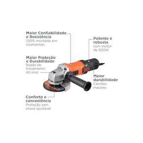 A Esmerilhadeira Angular 4-1/2" (115mm) da Black Decker, Modelo G720X, é a ferramenta perfeita para suas necessidades de trabalho.