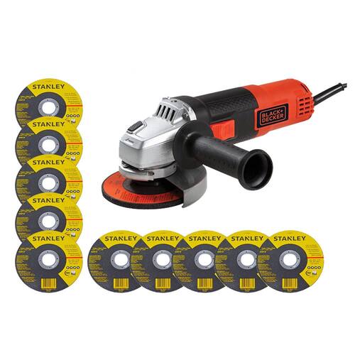 A Esmerilhadeira angular black & Decker 4.1/2 220v G650 + 10 discos, possui empunhadura para duas posições, guarda de proteção e trava do eixo para segurança do operador. Sua carcaça emborrachada proporciona maior conforto e segurança para o operador. É Ideal para desbaste em peças metálicas, acabamentos sobre soldas, remoção de rebarbas de peças fundidas, limpeza de superfícies enferrujadas ou com tinta. Caixa de engrenagem metálica, protege e oferece maior durabilidade das peças internas da máquina, além de ter um potente motor de 650w.
