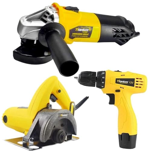 Kit Esmerilhadeira Angular + Parafusadeira 12v Furadeira +Serra + Esmerilhadeira Angular 4.1/2 800W 5033 Titanium + Parafusadeira Furadeira 12V 1,2Ah 6238 Titanium + Serra Mármore Profissional 4.3/8 1100w Titanium Esmerilhadeira Angular 4.1/2 800W 5033 Titanium Características: Função: Indicada para corte, desbaste e acabamento em superfícies metálicas, proporcionando alta performance. Punho Auxiliar: Equipado com um punho auxiliar de duas posições de fixação, oferecendo mais conforto e controle durante o manuseio. Design Compacto: Sua estrutura compacta permite o uso em locais de difícil acesso, tornando-a versátil para diversas situações. Segurança: Possui botão de trava do eixo e dupla isolação, garantindo maior segurança durante o uso. Durabilidade: Construção robusta e resistente, ideal para trabalhos pesados e de longa duração. Especificações: Marca: Titanium Modelo: 5033 00315124 Voltagem : 110v/220v Capacidade do Disco: 4.1/2 115 mm Rotação: 12.000 rpm, proporcionando alta velocidade para cortes rápidos e eficientes. Potência: 800W, potência adequada para tarefas de média intensidade. Cabo Elétrico: Sim, com bom comprimento para facilitar o manuseio durante o trabalho. + Parafusadeira Furadeira 12V 1,2Ah 6238 Titanium: Características: Função: Ferramenta para aperto, afrouxamento e furação simples, com fácil manuseio e boa performance. Mandril de Aperto Rápido: Mandril de 3/8 10mm com aperto rápido, ideal para facilitar a troca de brocas e bits durante o trabalho. Ajuste de Torque/Perfuração: Possui regulagens para torque e perfuração, além de botão de reversão para rotação no sentido horário e anti-horário. Luz LED: Equipado com luz LED para melhor visibilidade, especialmente em áreas com pouca iluminação. Compacta: Tamanho ideal para uso em espaços apertados, proporcionando praticidade e facilidade de manuseio. Especificações: Marca: Titanium Modelo: 6238 Voltagem: Bivolt funciona em 110V e 220V Bateria: 12V, 1,2 Ah, com tecnologia de bateria de íons de lítio. Mandril: 0,8-10 mm aperto rápido Tipo de Velocidade: Variável, com duas opções de rotação: 0-200 rpm para perfuração 0-1000 rpm para aperto e afrouxamento Torque: 20 Nm, proporcionando boa força para tarefas de aperto e perfuração leves. Sistema de Reversão: Sim, permite alterar a direção da rotação. Dimensões Aproximadas: 19 cm C x 4 cm L x 19 cm A Peso Aproximado: 1 kg, tornando-a uma ferramenta leve e fácil de manusear. + Serra Mármore Profissional 4.3/8 1100w Titanium Caracteristicas: Serra mármore 4.3/8 1100 watts da Titanium é uma ferramenta elétrica apropriada para uso em construções, pois corta mármore, granito, concreto, alvenaria, telha, tijolo, ardósia, pedras em geral. Madeira e muito mais utilizando os discos de cortes corretos. Possui motor potente, proporcionando ótimo acabamento ao corte. Conta com trava de gatilho, que facilita os trabalhos mais longos. Sua regulagem de profundidade permite ajustes de corte com mais precisão e proporcionando melhor acabamento. Seu funciona como dispositivo de segurança evitando movimentos involuntários e motor com dupla isolação, diminuindo riscos de acidentes ao usuário. Especificações Marca: Titanium Modelo: 07664 Voltagem: 110v/220v Diâmetro do disco: 110mm Diâmetro do eixo: 20mm Diâmetro do disco mm : 110 Diâmetro do disco polegada 4.3/8 Potência: 1100W Rotação Máxima: 11000 Largura 23cm: Altura: 18cm Comprimento: 20cm Peso: 2.50 Kg Itens inclusos: 1 Empunhadura Emborrachada: Para maior conforto e controle durante o uso. 1 Capa de Proteção para Discos: Garante maior segurança ao operador. 1 Chave de Fixação: Para facilitar a troca dos discos. 2 Escovas Extras de Carbono: Para prolongar a vida útil da ferramenta e facilitar a manutenção. 1 serra mármore 1 chave inglesa 1 Parafusadeira Elétrica 1 Bateria 12V 1 Carregador Bivolt