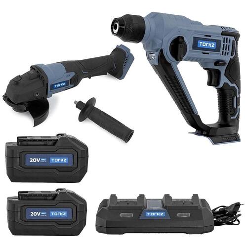 Esmerilhadeira TRB0003, Martelete TRB0002, 2 Baterias 4,0 Ah e 1 Carregador de Bateria Duplo Torkz, 20 Volts