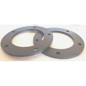 Ficha técnica: 5 furos passantes Espessura da peça 1cm (10mm) é o que vai avançar da posição original do carro, vai precisar usar parafusos ou prisioneiros alongados para uso dessa peça Peça fabricada em ferro nodular ggg40 muito próximo do aço Peso de cada peça 0,500kgs Preço 02 peças e 10 parafusos esféricos
